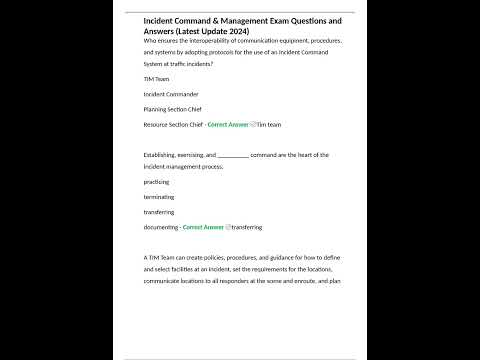 Incident Command & Management Exam Questions and Answers Latest Update 2024