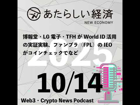 【10/14話題】博報堂・LG電子・TFHがWorld ID活用の実証実験、ファンプラ(FPL)のIEOがコインチェックでなど(音声ニュース)