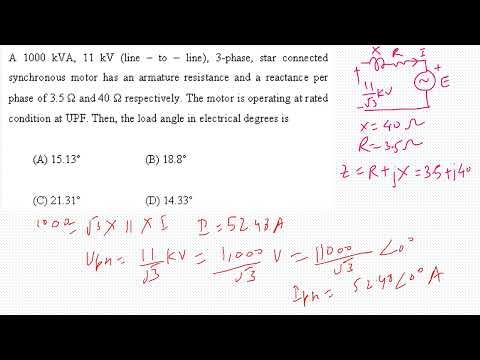 #machines Question 21: Finding load angle in a synchronous motor. #ee #gate