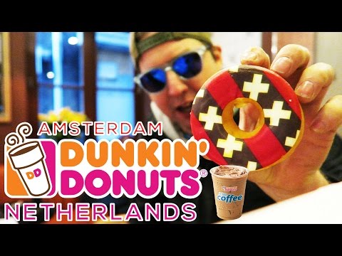 ☕Dunkin' Donuts Netherlands Amsterdam Premier Iced Macchiato Coffee with Special Donut review 🍩