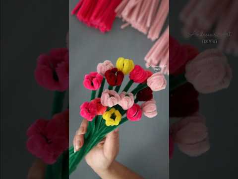 DIY PIPE CLEANER Tulips Bouquet EASY #pipecleanercrafts #shorts #pipecleanerbouquet