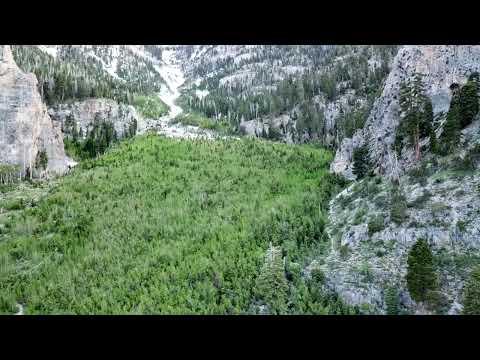 Coniferous Forest drone view of the mountain lake in the middle of Coniferous Forest