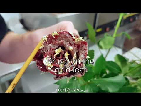 How to make crystallised edible roses with gold leaf
