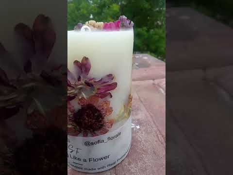 Beautiful hand poured candle with pressed flowers #candleopeningvideo