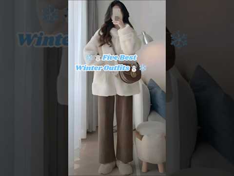 Five Best Winter Outfits❄️☃️ ❄️|Korean winter outfits#shorts#winterfashion #winterdress#new#outfit