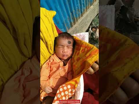 Cute baby sunbathing on winter morning